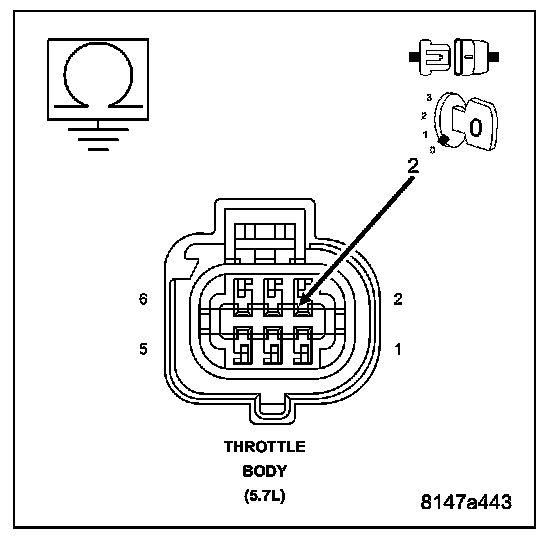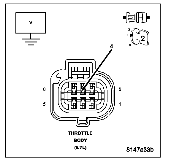 Measure the resistance between ground and the (F855) 5-volt Supply circuit at the Throttle Body harness connector.