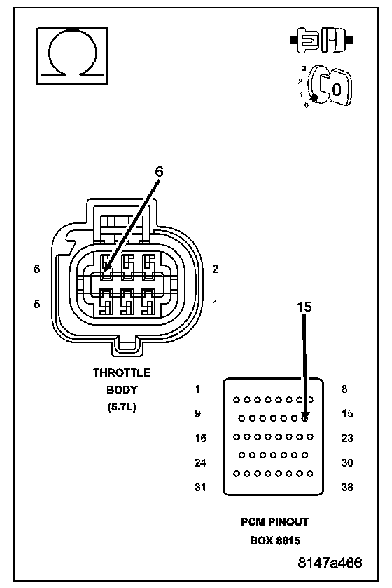 Measure the resistance of the (K922) Sensor Return circuit from the Throttle Body harness connector to the appropriate terminal of special tool #8815.