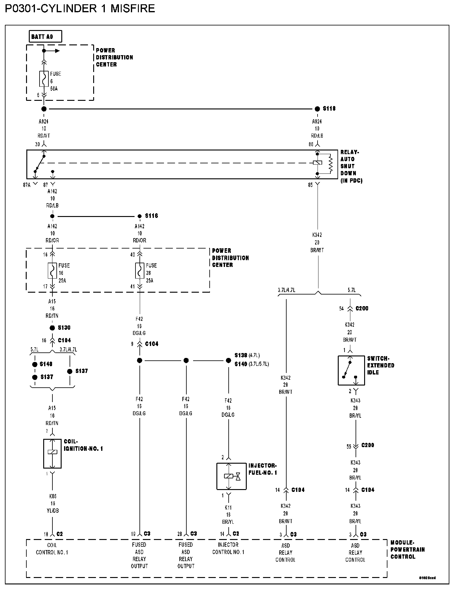 NOTE: When a Misfire is detected for a particular cylinder, the PCM will shut down that cylinders Injector Control circuit.