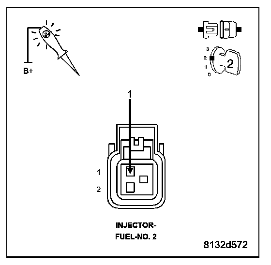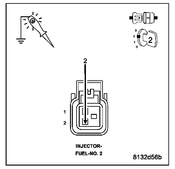 Using a 12-volt test light connected to 12-volts, probe the (K12) Injector Control No.2 circuit.