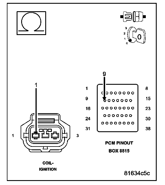 CAUTION: Do not probe the PCM harness connectors. Probing the PCM harness connectors will damage the PCM terminals resulting in poor terminal to pin connection. Install Miller Special Tool #8815 to perform diagnosis.