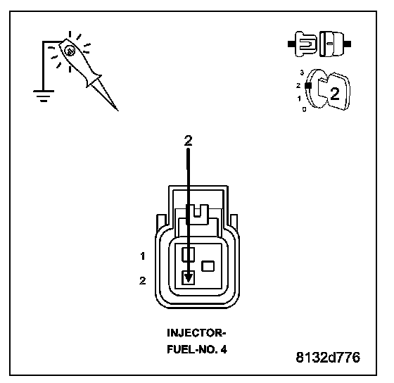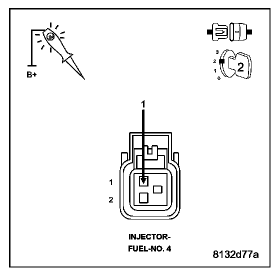 Using a 12-volt test light connected to 12-volts, probe the (K14) Injector Control No.4 circuit.