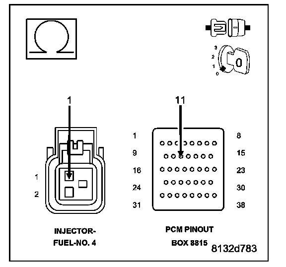 CAUTION: Do not probe the PCM harness connectors. Probing the PCM harness connectors will damage the PCM terminals resulting in poor terminal to pin connection. Install Miller Special Tool #8815 to perform diagnosis.