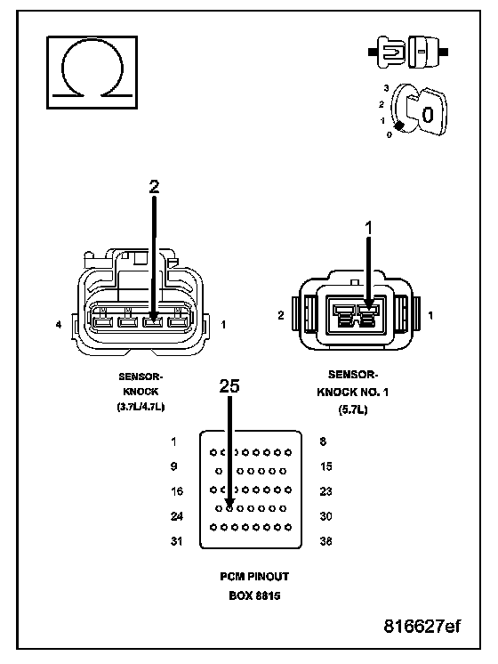 CAUTION: Do not probe the PCM harness connectors. Probing the PCM harness connectors will damage the PCM terminals resulting in poor terminal to pin connection. Install Miller Special Tool #8815 to perform diagnosis.