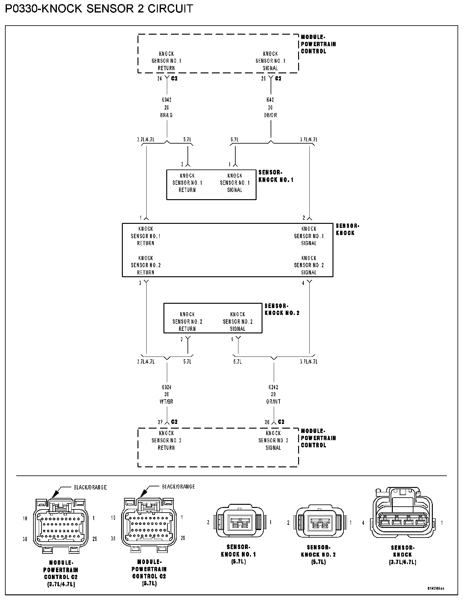 - (K242) knock sensor No.2 signal circuit shorted to the (K924) knock sensor No.2 return circuit