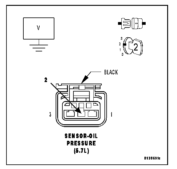 Measure the voltage on the (G6) Engine Oil Pressure Signal circuit in the Engine Oil Pressure Sensor harness connector.