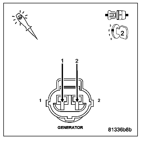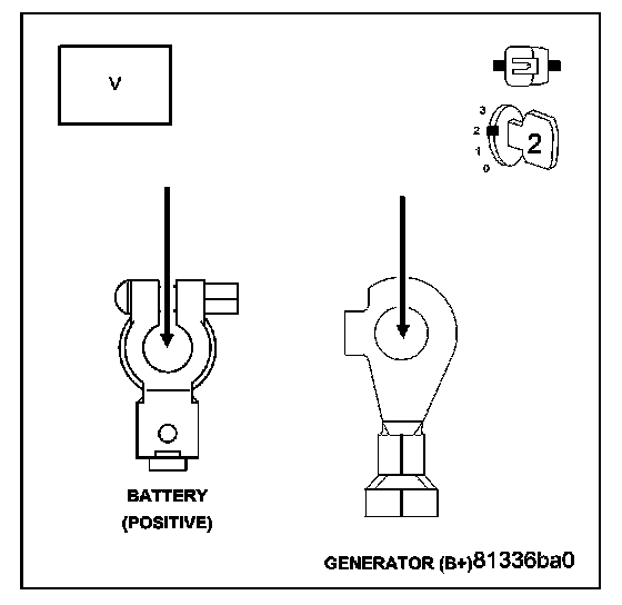 NOTE: Make sure all wires are clear of the engine's moving parts. Measure the voltage between the Generator case and Battery ground post.
