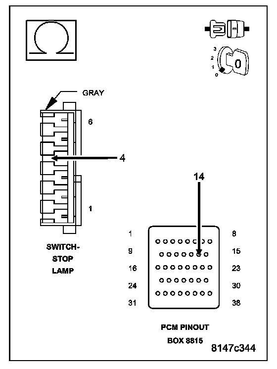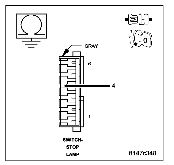 Measure the resistance between ground and the (Z904) Ground circuit in the Stop Lamp Switch harness connector.