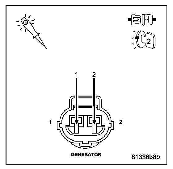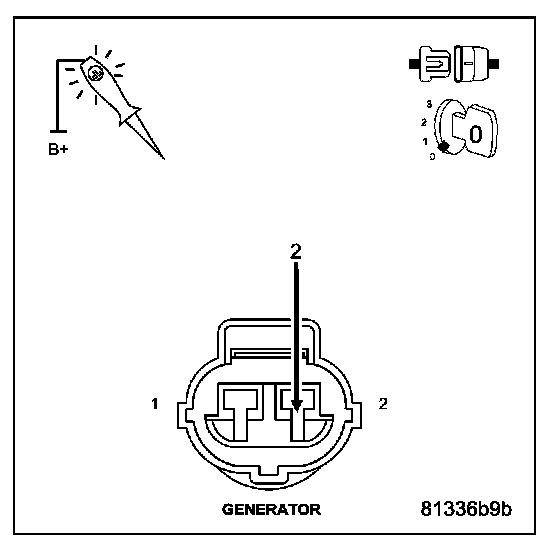 Using a 12-volt test light, jump it across the Generator Field harness connector.