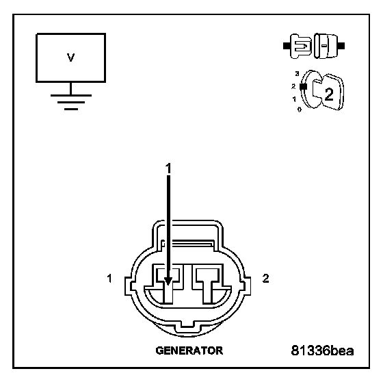 Using a 12-volt test light connected to battery voltage, probe the (Z385) Ground circuit in the Gen Field harness connector.