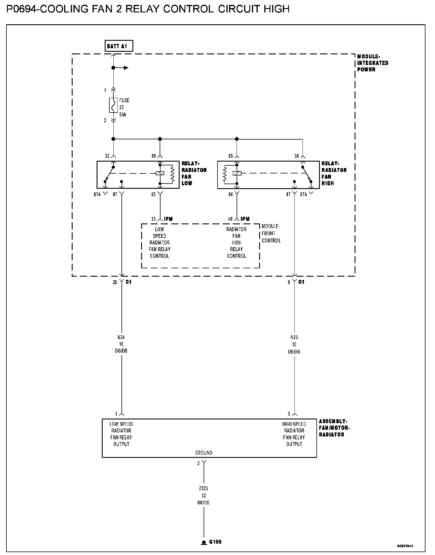P0694-COOLING FAN 2 RELAY CONTROL CIRCUIT HIGHP0694 - Cooling Fan 2 Relay Control Circuit High: