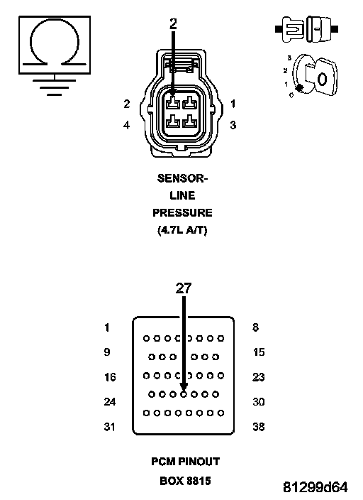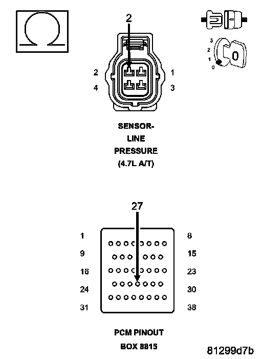 Ignition on, engine not running. With the scan tool, monitor the Line Pressure while firmly pushing the Transmission Line Pressure Sensor connector inwards towards the Transmission.