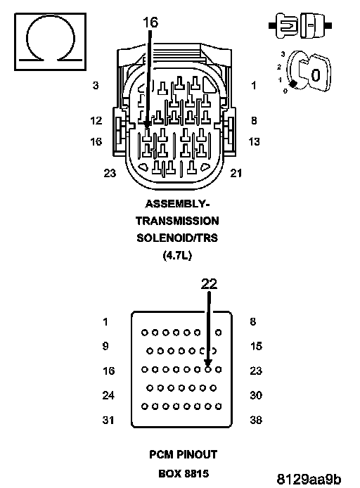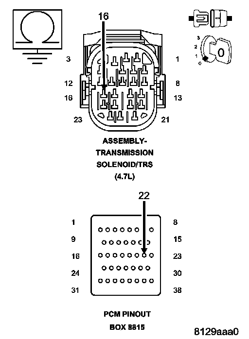 CAUTION: Do not probe the PCM harness connectors. Probing the PCM harness connectors will damage the PCM terminals resulting in poor terminal to pin connection. Install Miller tool #8815 to perform diagnosis.