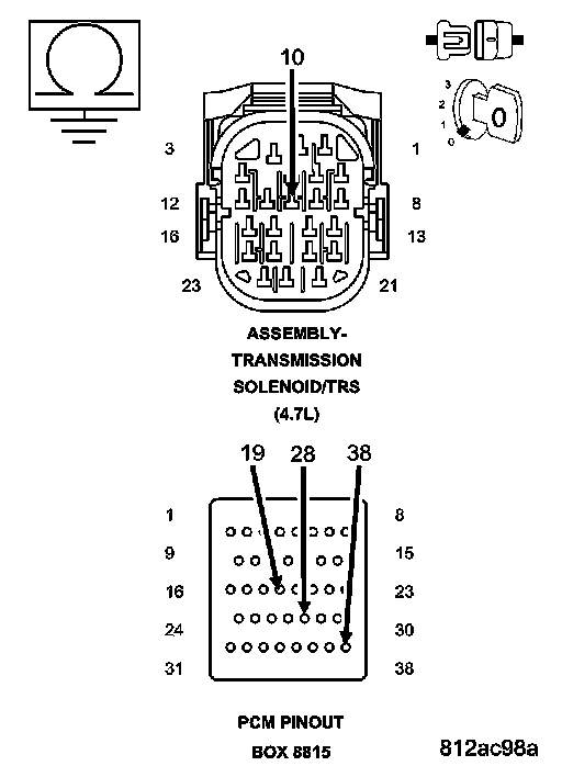 CAUTION: Do not probe the PCM harness connectors. Probing the PCM harness connectors will damage the PCM terminals resulting in poor terminal to pin connection. Install Miller tool #8815 to perform diagnosis.