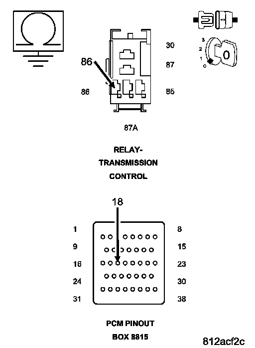 Using a 12-volt test light connected to 12-volts, check the (Z915) Transmission Control Relay Ground circuit in the Transmission Control Relay connector.