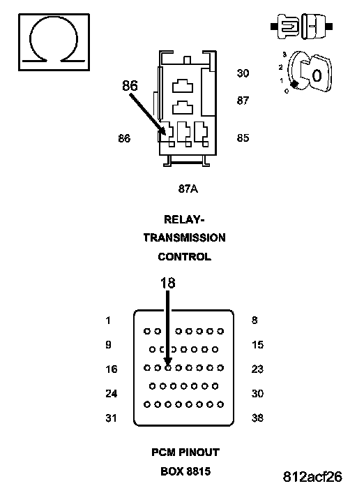 Using a 12-volt test light connected to ground, check the (A104) Fused B(+) circuit in the Transmission Control Relay connector.