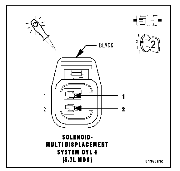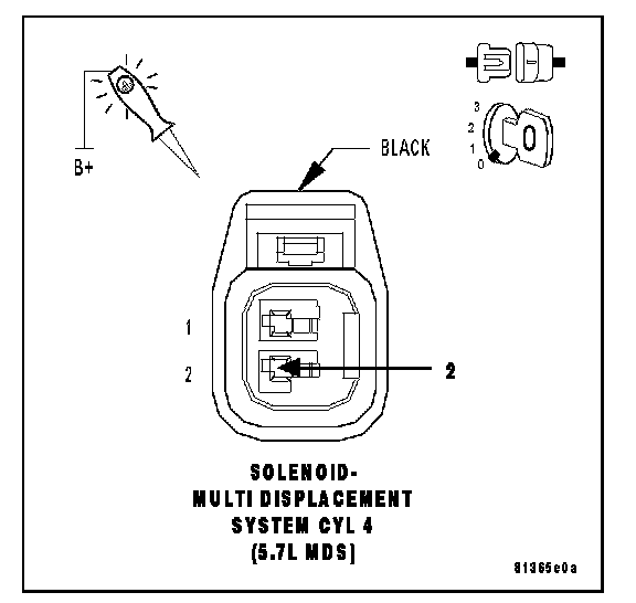 Using a 12-volt test light connected to the 12-volts, probe the (Z42) Ground circuit in the MDS Solenoid No.4 harness connector.