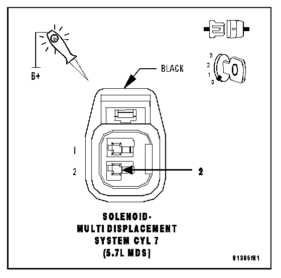 Using a 12-volt test light connected to the (Z904) Ground circuit, probe the (K454) MDS Solenoid No.7 Control circuit.
