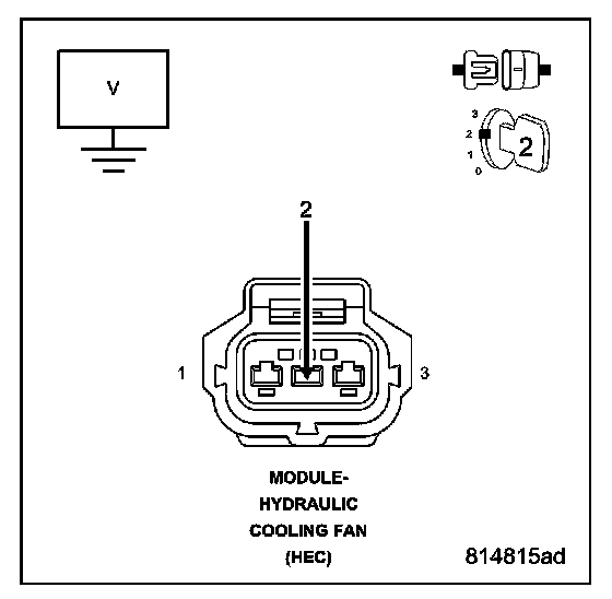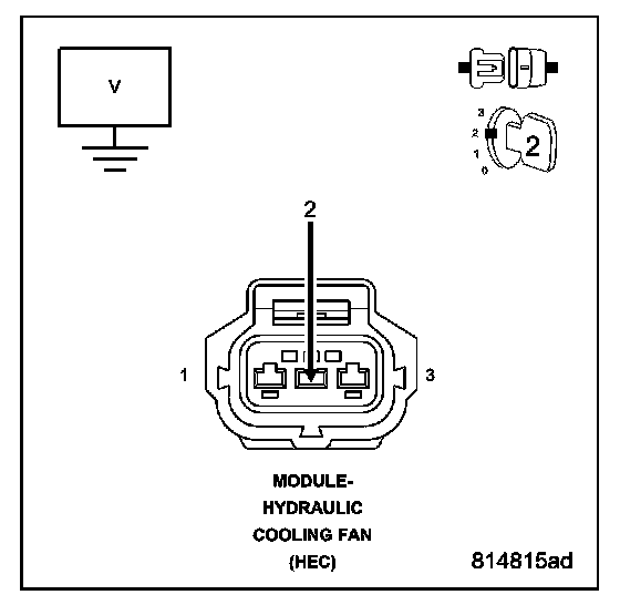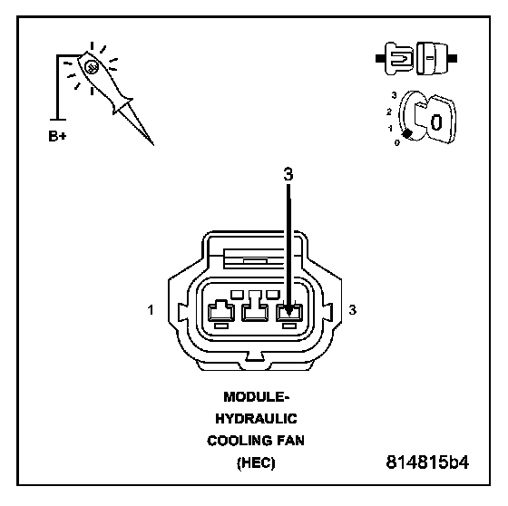 Using a 12-volt test light connected to B+, probe the (Z823) Ground circuit in the Hydraulic Cooling Fan Module harness connector.