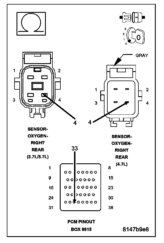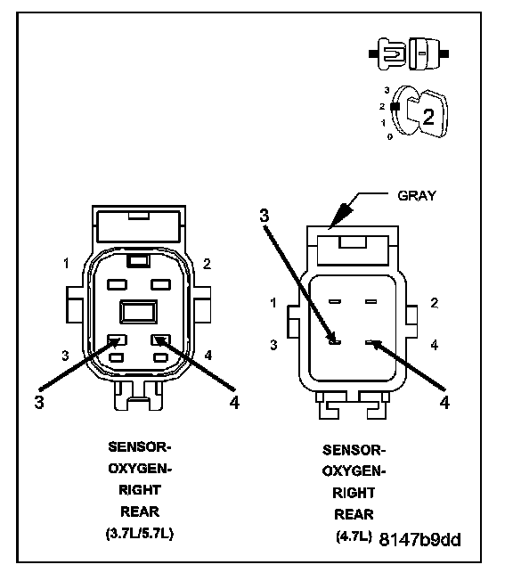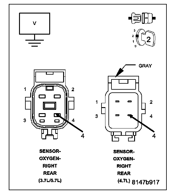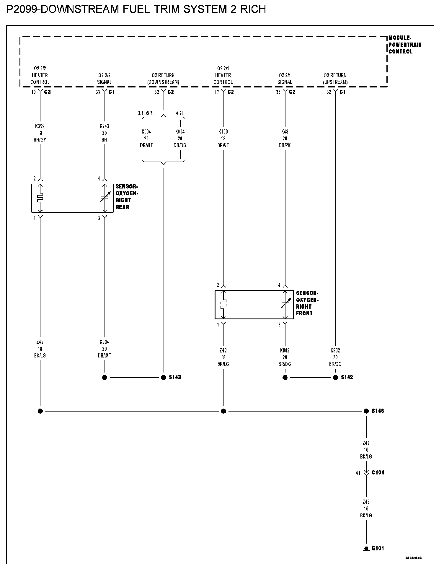 NO: Check the (K904) O2 Return Downstream circuit for a short to ground, open, or short to voltage. Inspect the O2 Sensor connector and the PCM harness connector. If OK, replace and program the Powertrain Control Module. Perform the POWERTRAIN VERIFICATION TEST. Powertrain Verification Test