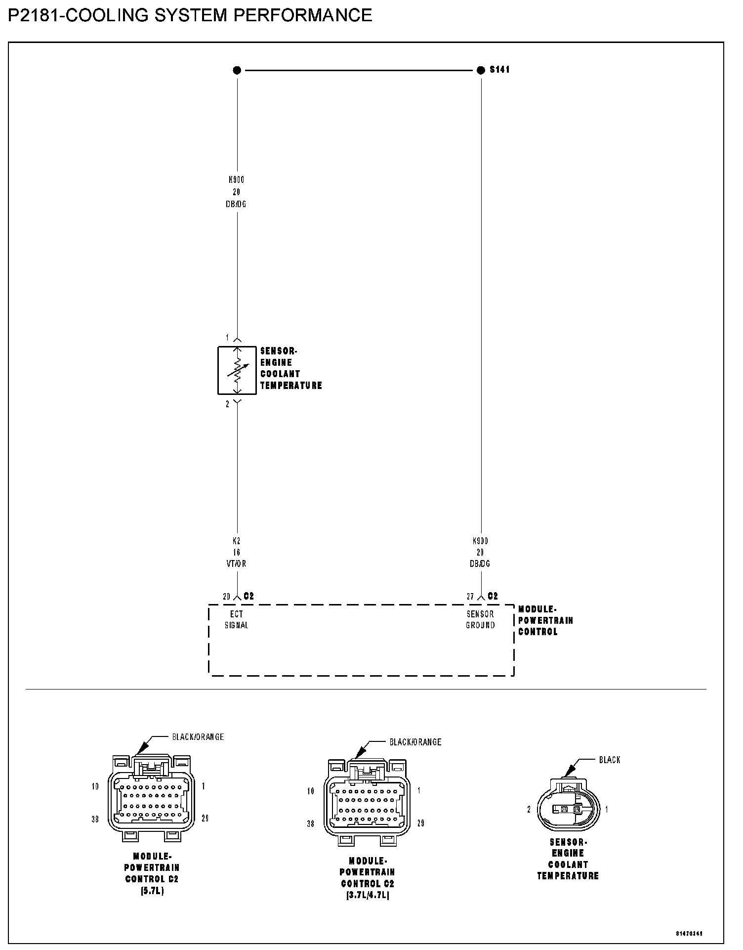 - (K2) ECT signal circuit shorted to the (K900) sensor ground circuit