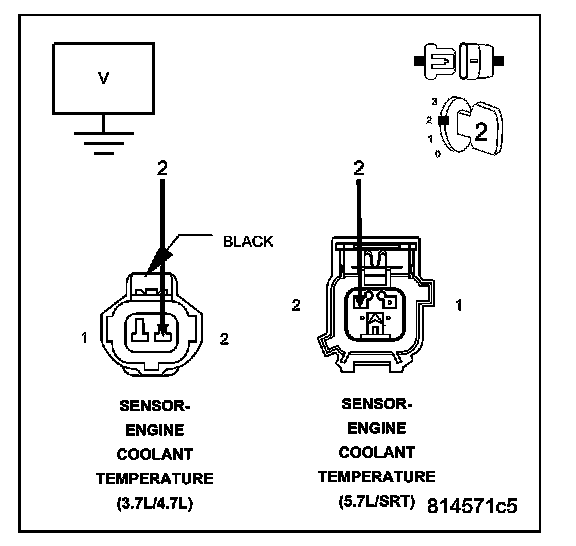 Measure the voltage on the (K2) ECT Signal circuit in the ECT Sensor harness connector.