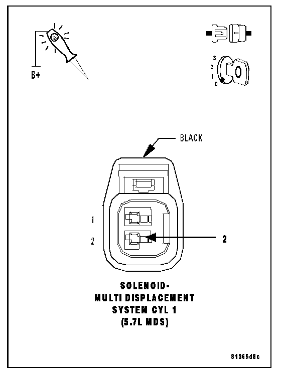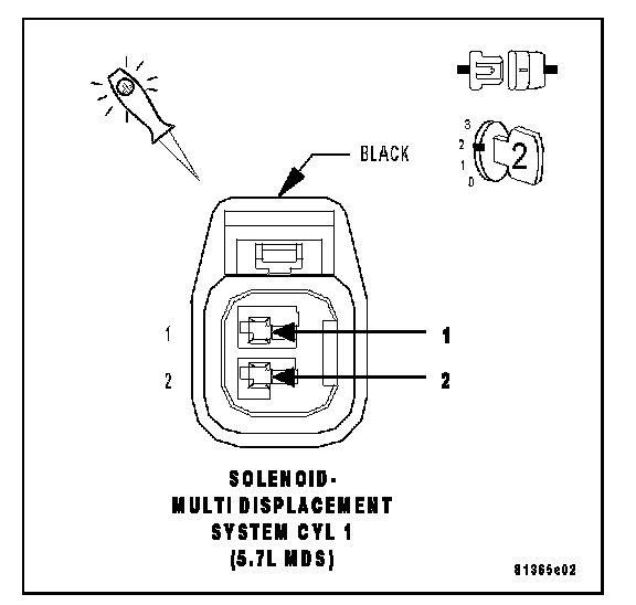 Using a 12-volt test light connected to the 12-volts, probe the (Z42) Ground circuit in the MDS Solenoid No.1 harness connector.