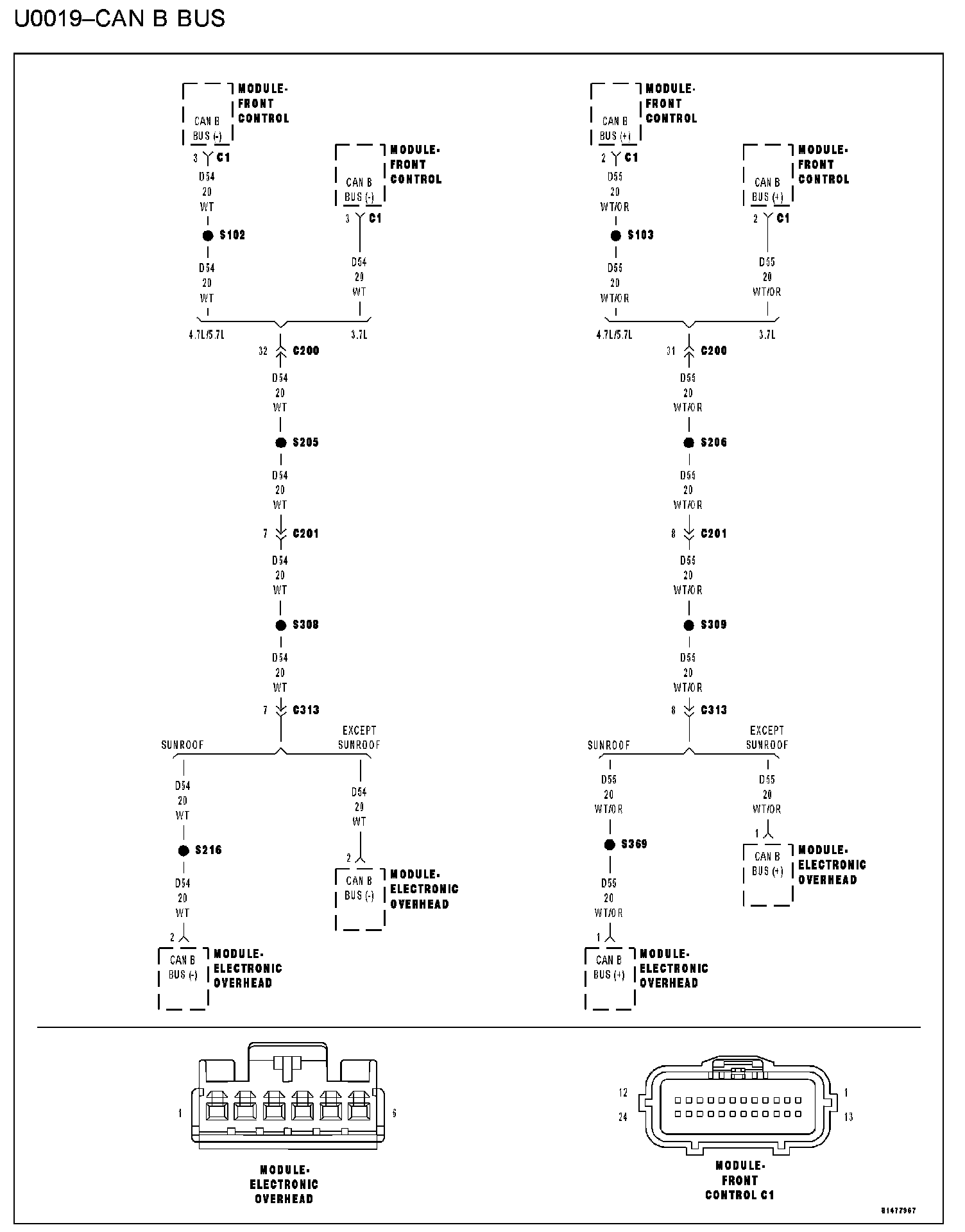 - (D55) CAN B BUS (+) circuit open