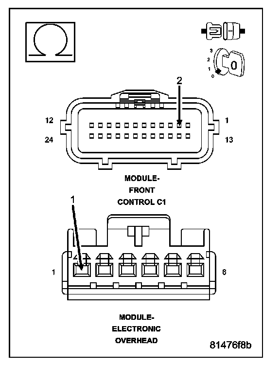 Measure the resistance of the (D55) Can B Bus (+) circuit between the Front Control Module C1 harness connector and the Electronic Overhead Module harness connector.