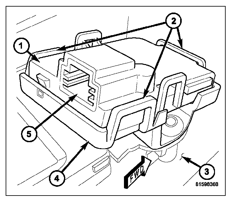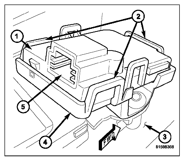 4. Disconnect the take out of the overhead wire harness from the connector receptacle (5) on the rearward end of the receiver housing.