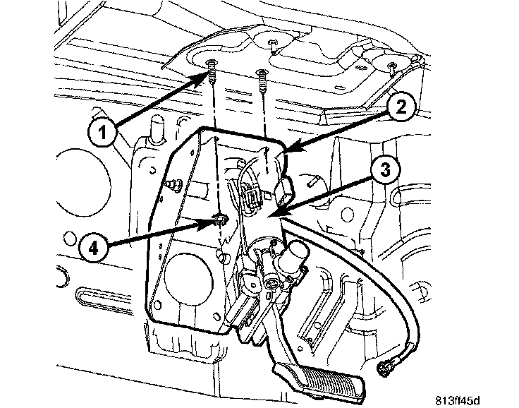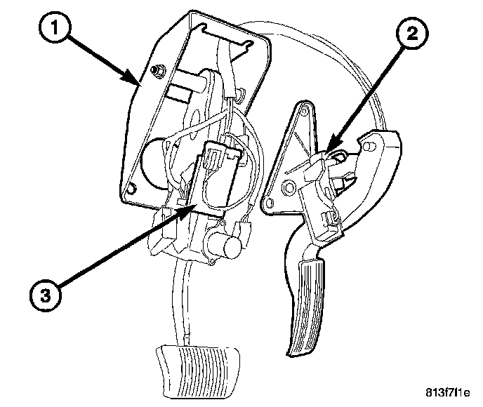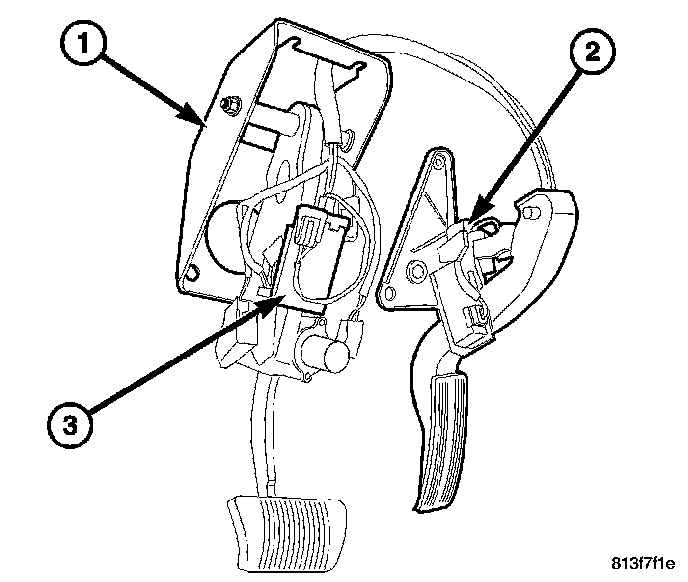 11. Remove the brake pedal/accelerator pedal assembly (2&3) from the vehicle.