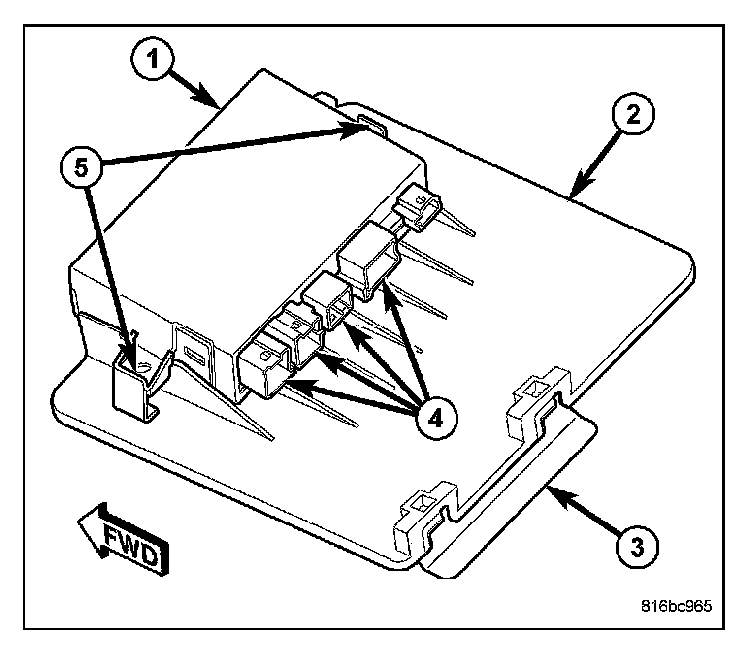3. Reconnect the four body wire harness connectors to the module connector receptacles (4).