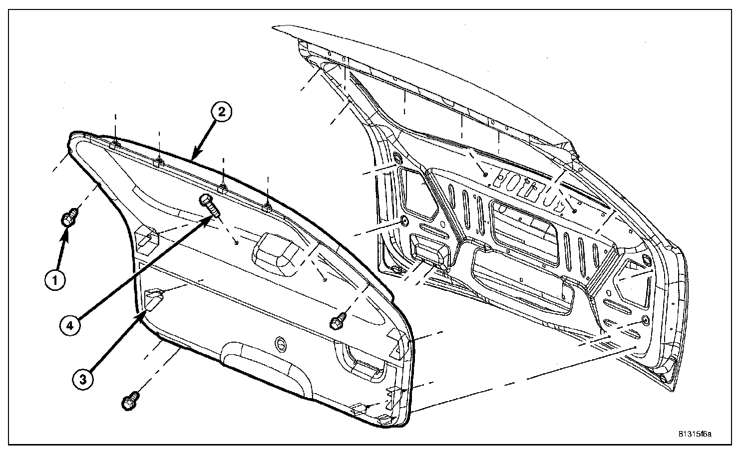 2. Remove the trim panel from the inside of the liftgate. Refer to Trunk / Liftgate Moulding / Trim.