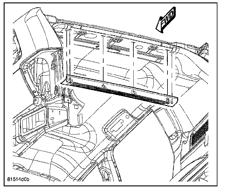 3. Remove the trim plate from the upper liftgate opening header. Refer to Trim Panel.