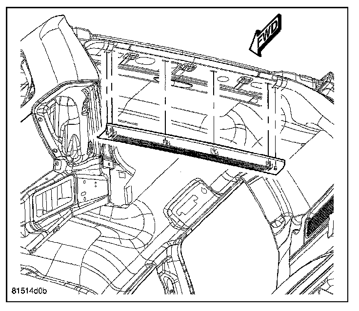 1. Align the retaining tabs on the upper liftgate trim panel with the retaining clips in the liftgate opening and engage the retaining tabs that secure the trim panel to the liftgate opening.