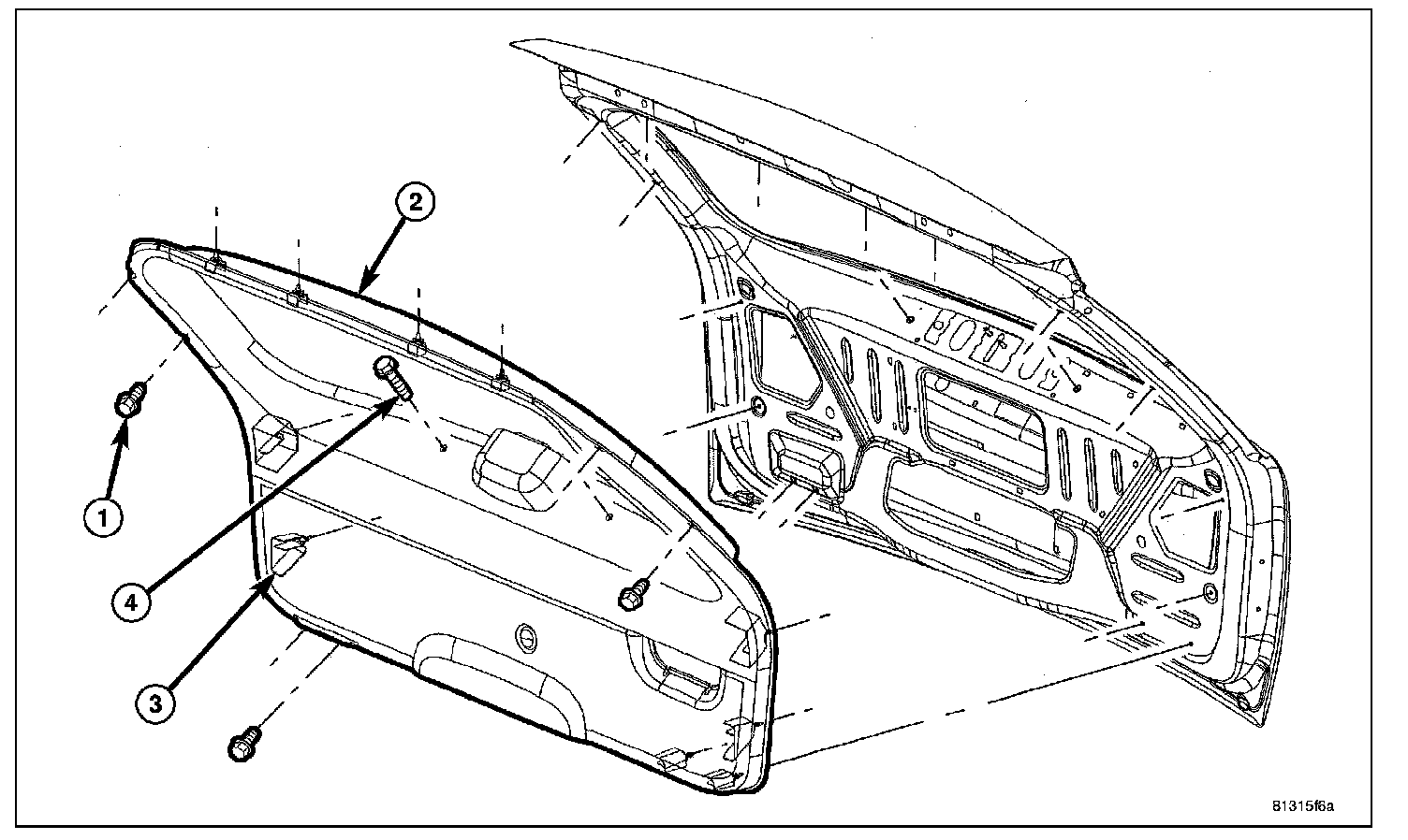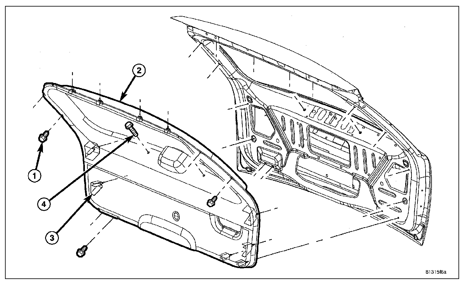 2. Remove the trim panel from the liftgate (2). Refer to Trunk / Liftgate / Moulding / Trim.