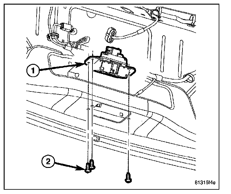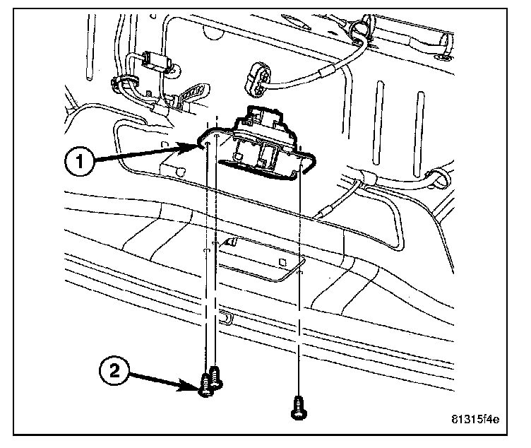 6. Remove the three screws (2) that secure the latch (1) to the liftgate.