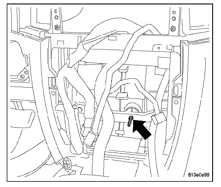 11. Install the screw at the bottom of the glove box opening to the blower motor housing support.
