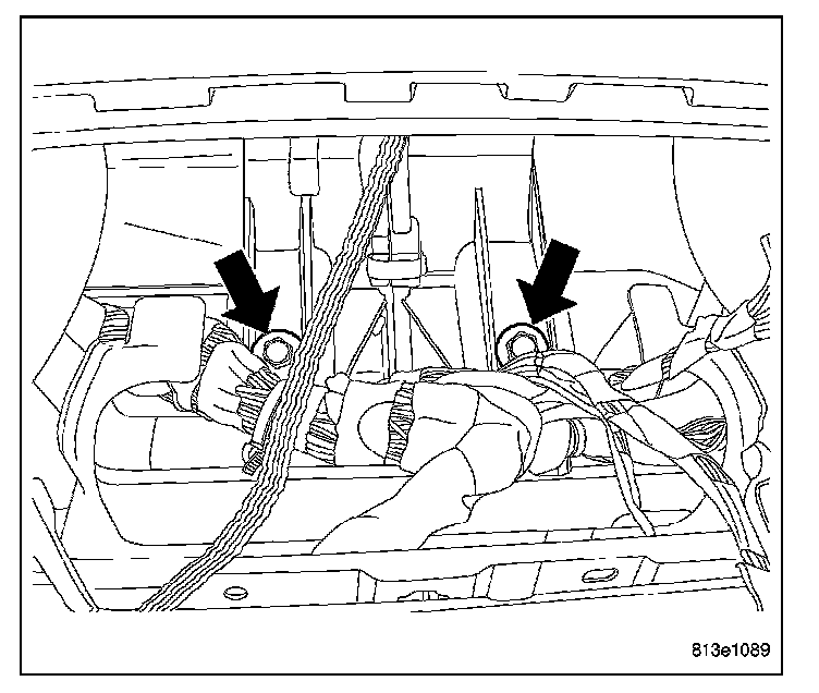 26. Install the grounds within the steering column opening and install the bolts.