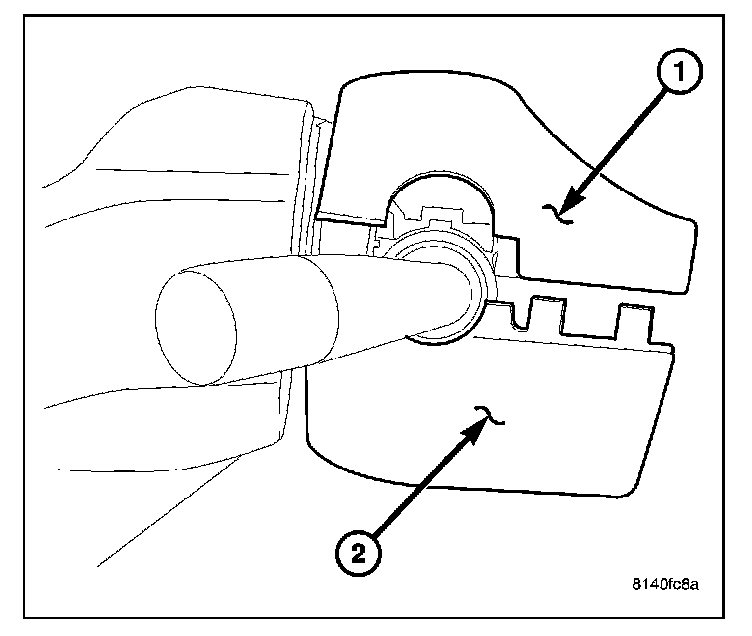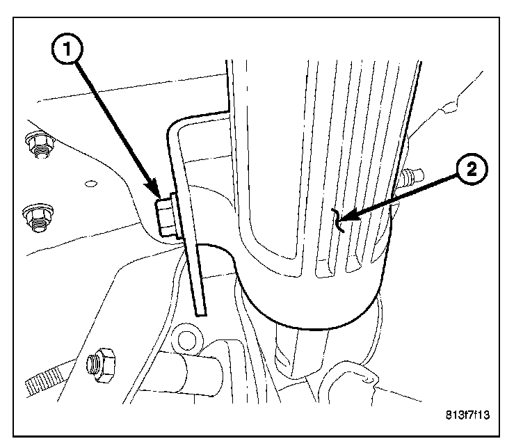 22. Install the two nuts (1) on the studs (2) above the column tighten the nuts to 12 N.m (105 in. lbs.).