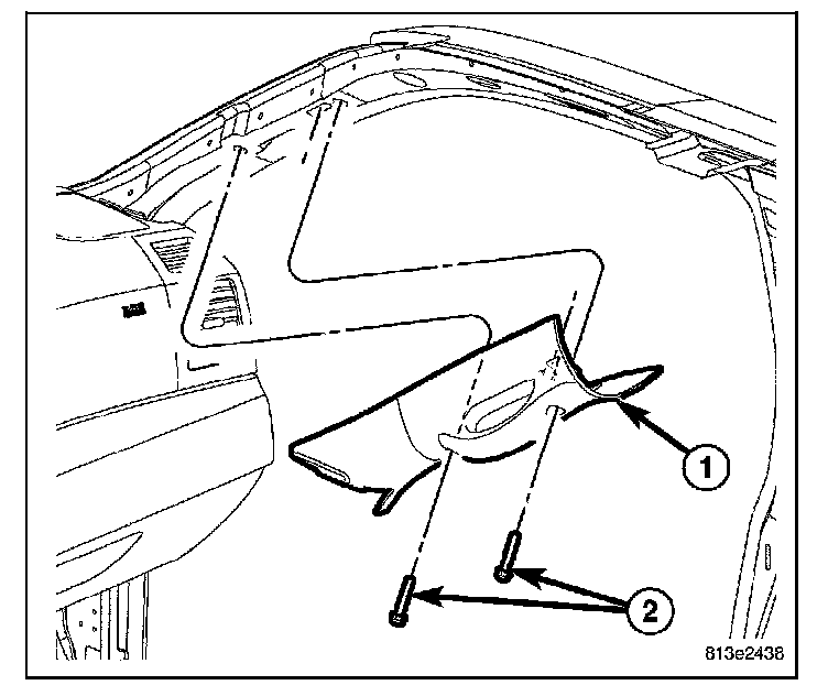 19. Install the right a-pillar trim, the bolts and position the door seal back.