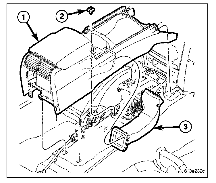 56. Install the center floor duct (3).