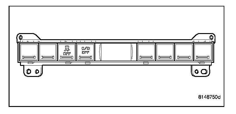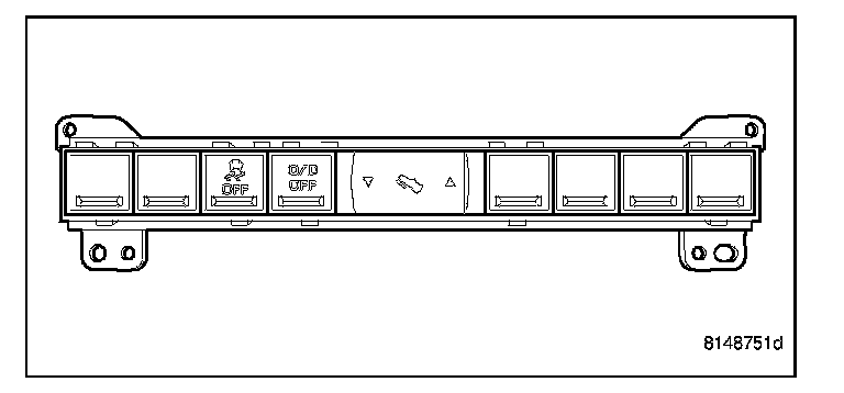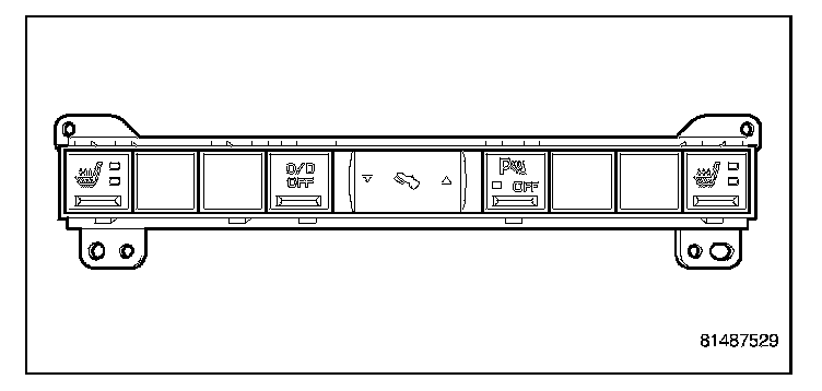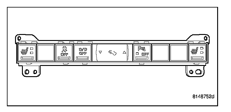 The Lower Instrument Panel Switch Pod on this model is available in six different configurations. They vary from a single switch configuration to a six switch configuration. The lower switch pod is located just below the HVAC control unit in the instrument panel center stack, Refer to each individual area of the service/diagnostic information for Description, Operation, Diagnosis, and Testing of the effected switch (I.E. Adjustable Pedals Switch - Brakes).The one button switch configuration will include: