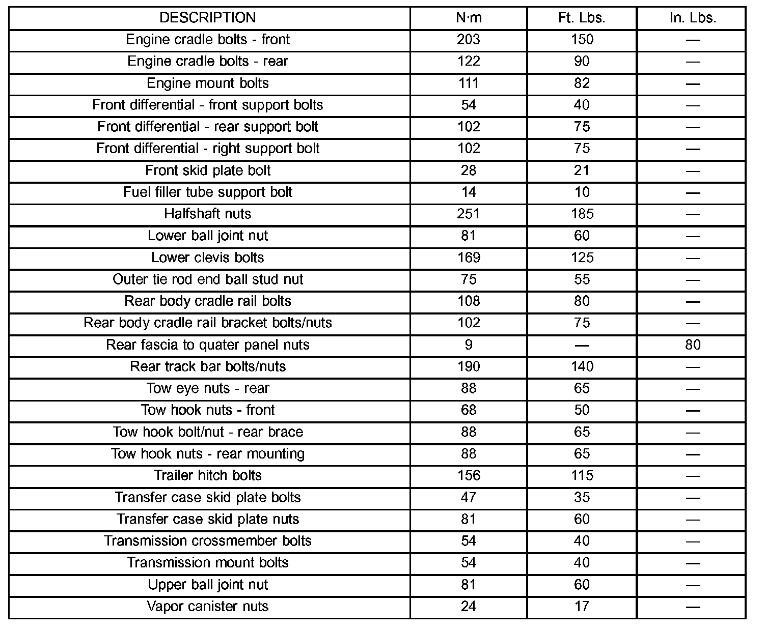 Torque Specifications: