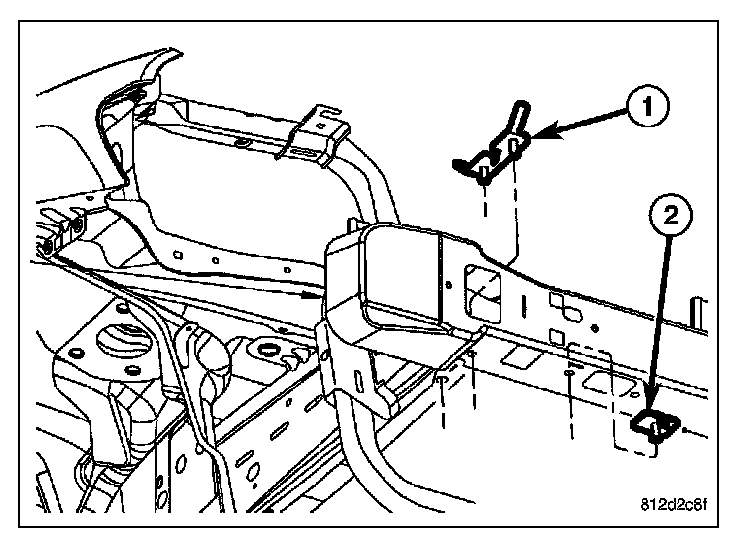 1. Install the stud plates (1 & 2) through the holes in the front bumper beam.