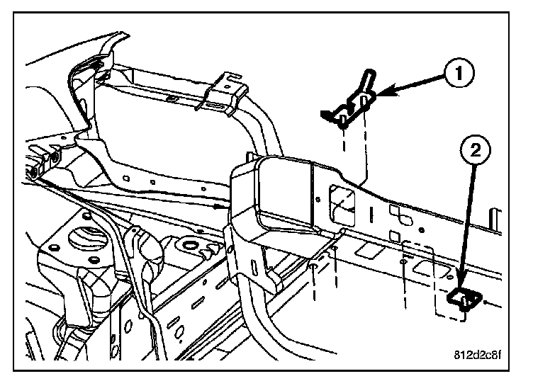 2. Release the clip fasteners and remove the stud plates (1 & 2).