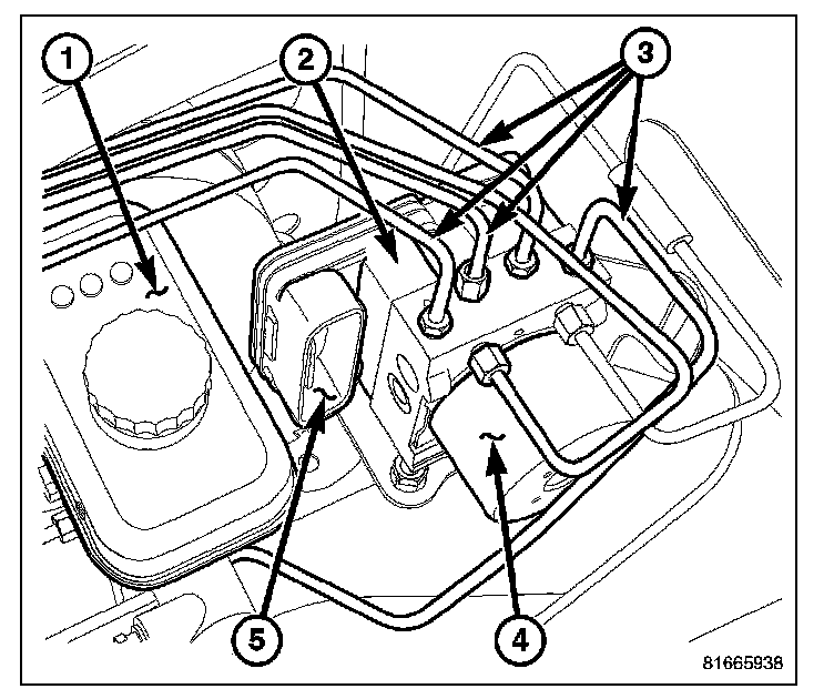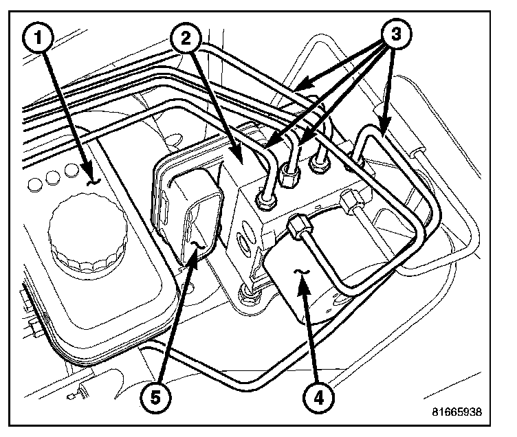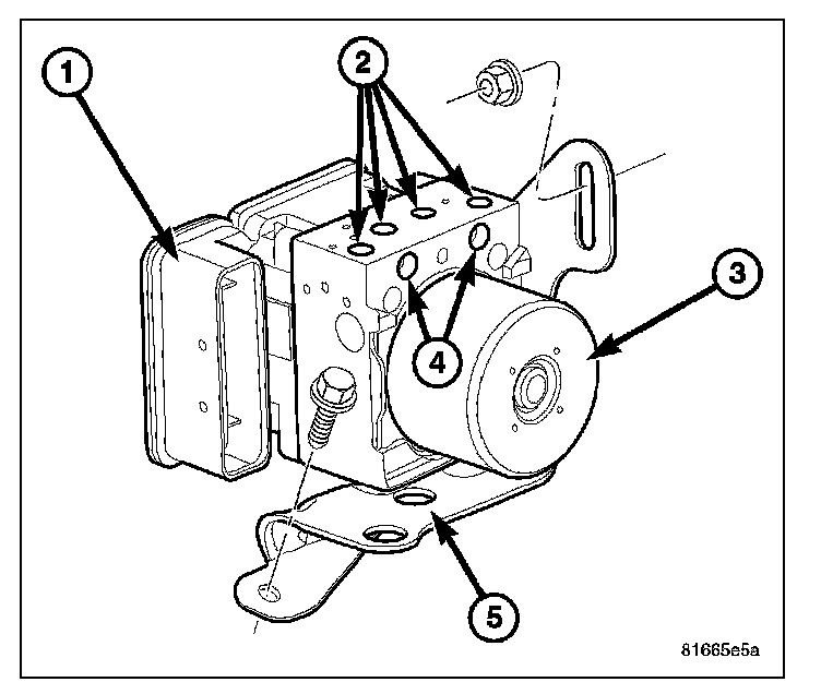 11. Remove the HCU (3) with the bracket (5) from the vehicle.