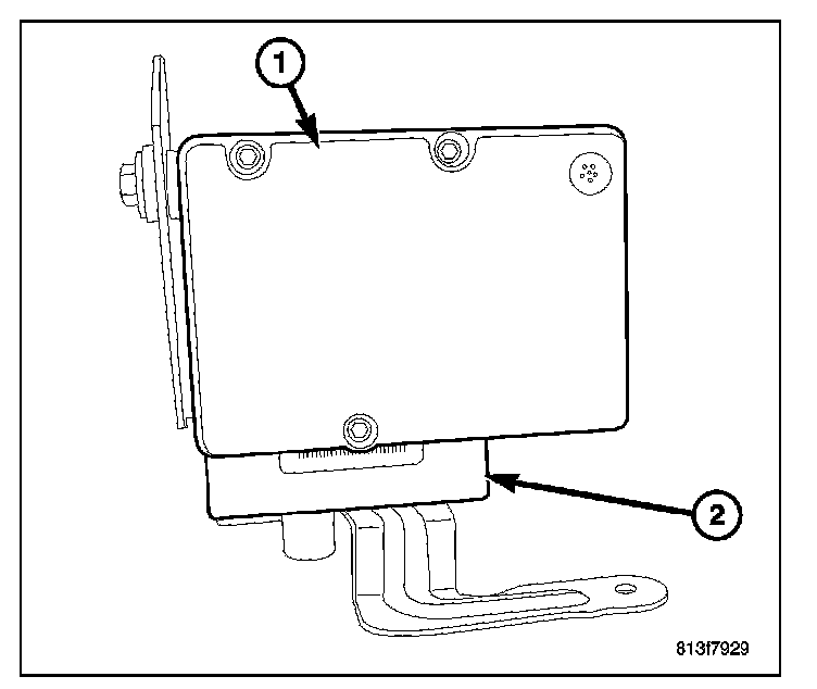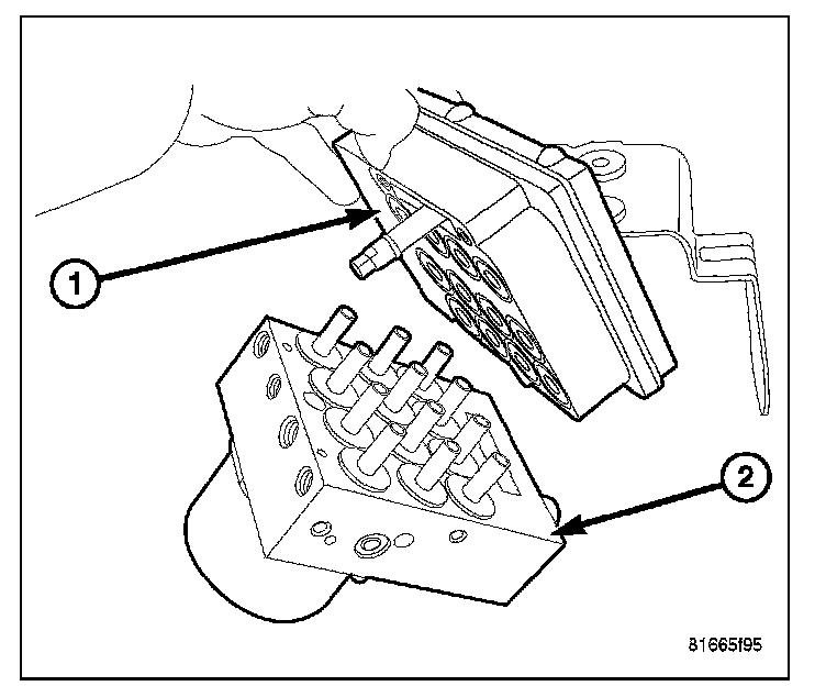 3. Install the 3 ABM (1) mounting bolts to the HCU (2) if removed tighten mounting bolts to 12 N.m (9 ft. lbs.).