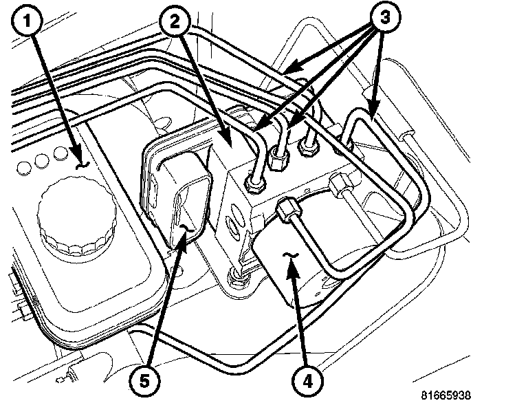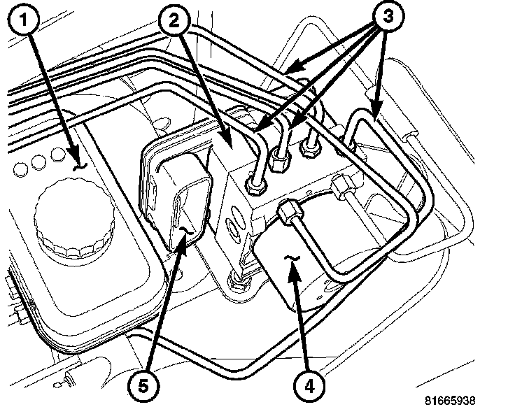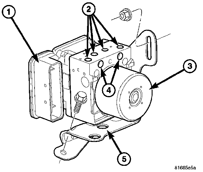 11. Remove the HCU (3) with the bracket (5) from the vehicle.