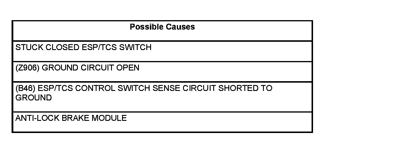 - Repair the (B46) ESP/TCS control circuit for a short to ground.